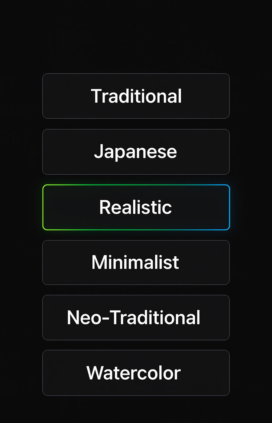 Blackwork, Watercolor, Minimal, and more.